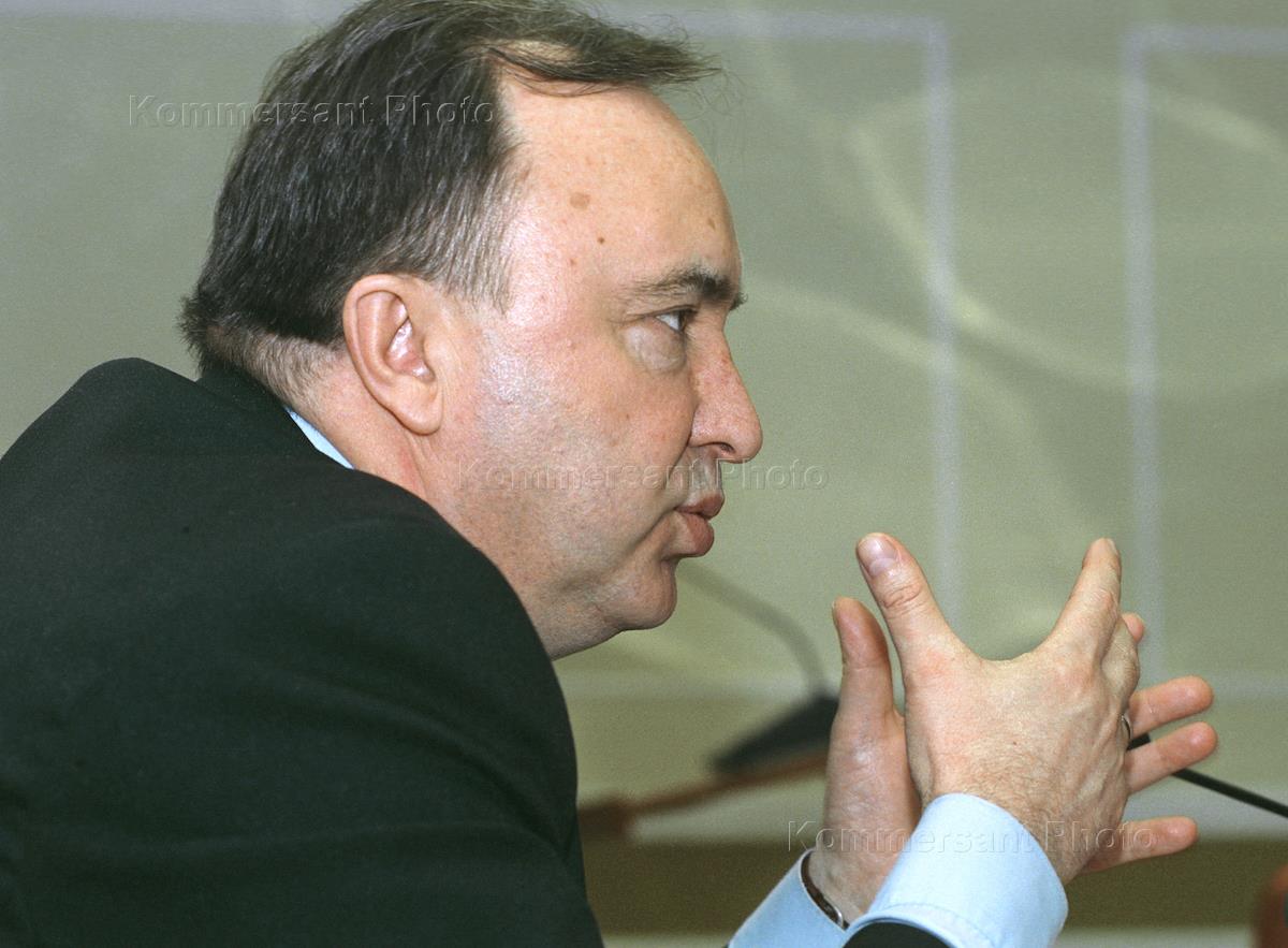 Первый заместитель министра природных ресурсов России, руководитель Государственной лесной службы Валерий Рощупкин во время брифинга на тему: "Предварительные результаты подготовки к пожарам 2003 года в лесах России". Брифинг прошел в Министерстве природных ресурсов России.