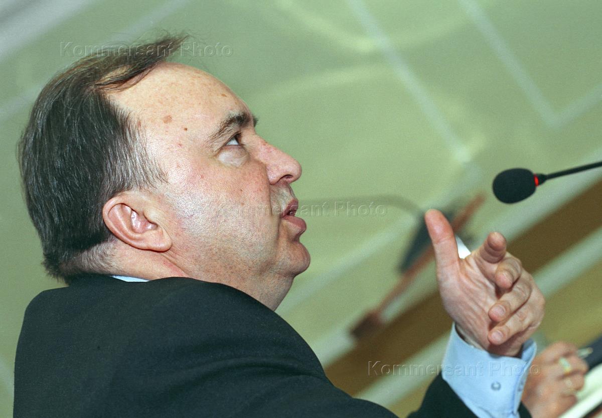 Russian Deputy Natural Resources Minister Valery Roshchupkin is interviewed at the news conference headlined 'Measures Taken to Prevent Wildfires in the 2003 Summer'. The news conference was held in the Natural Resources Ministry.