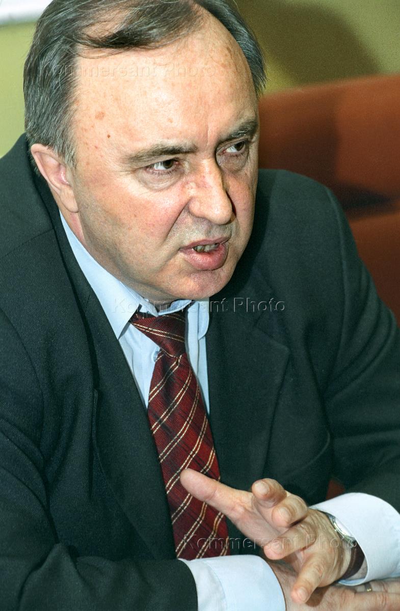 Russian Deputy Natural Resources Minister Valery Roshchupkin is interviewed at the news conference headlined 'Measures Taken to Prevent Wildfires in the 2003 Summer'. The news conference was held in the Natural Resources Ministry.