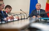 Президент России Владимир Путин во время совещания с членами правительства России в резиденции Ново-Огарево.