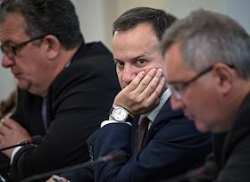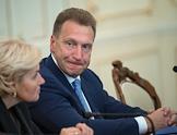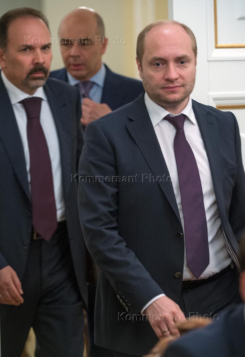 Слева направыо: министр строительства и жилищно-коммунального хозяйства России Михаил Мень, министр финансов России Антон Силуанов, министр по развитию Дальнего Востока Александр Галушка перед началом совещания президента России Владимира Путина с членами правительства России в резиденции Ново-Огарево.