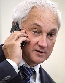 Помощник президента Роccии Андрей Белоусов перед началом совещания президента России Владимира Путина с членами правительства России в резиденции Ново-Огарево.
