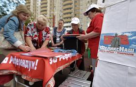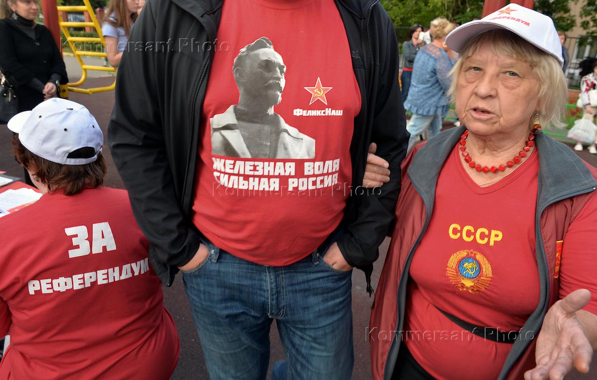 Встреча депутатов фракции КПРФ с жителями района Кузьминки Юго-восточного административного округа Москвы. Сбор подписей за возвращение памятника Дзержинскому на Лубянку.