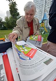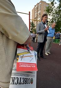 Встреча депутатов фракции КПРФ с жителями района Кузьминки Юго-восточного административного округа Москвы. Раздача газет.