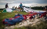 Участники Фестиваля воздухоплавания во время запуска аэростата.
