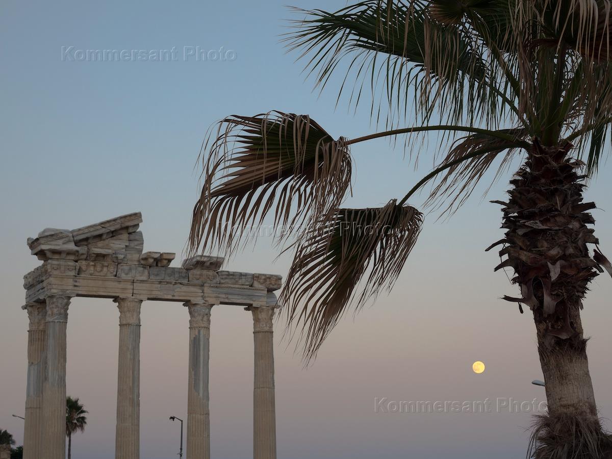 Известковые террасы Памуккале в долине Большого Мендереса, у кромки гор во Фригийской области Западной Турции.