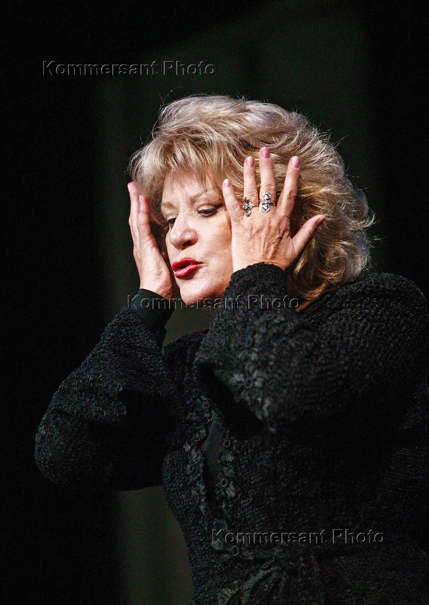 Оперная певица Галина Вишневская на презентации кинокомпании "Пролайн-фильм" фильма режиссера Александра Сокурова "Александра", где в главной роли снялась Галина Вишневская. Презентация прошла в Михайловском театре.
