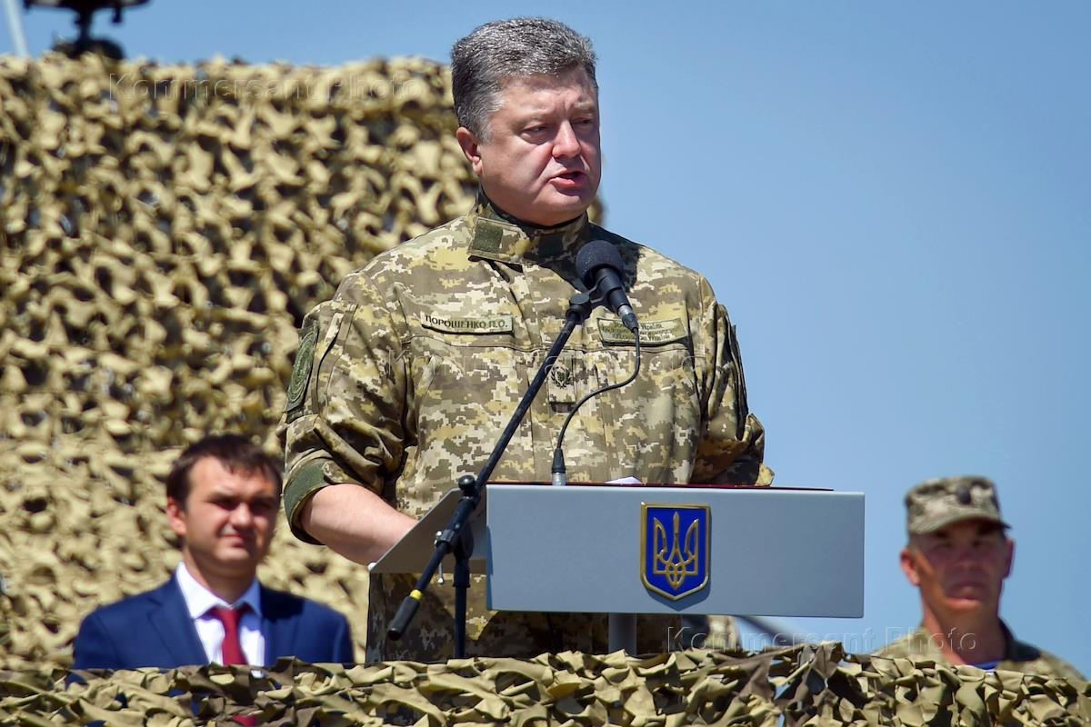 Рабочая поездка президента Украины Петра Порошенко в Николаевскую область. Президент Украины Петр Порошенко во время посещения 235 общевойскового полигона.