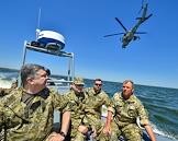 Рабочая поездка президента Украины Петра Порошенко в Николаевскую область. Президент Украины Петр Порошенко во время ознакомления с ходом тактических учений Военно-Морских Сил Украины.