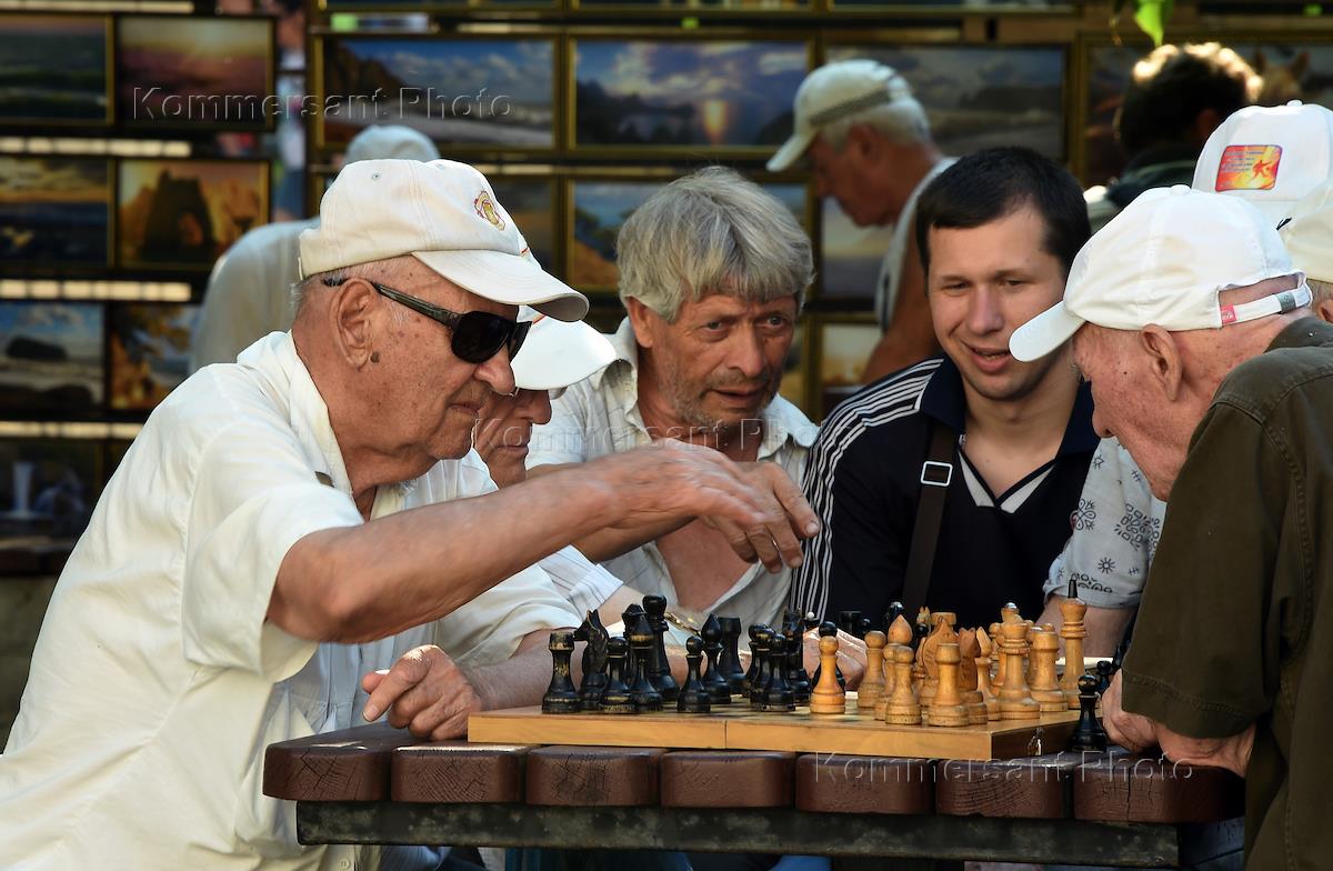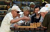 Жанровая фотография. Мужчины играют в шахматы в парке.