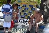 Жанровая фотография. Люди предлагают туристам жилье и экскурсии.