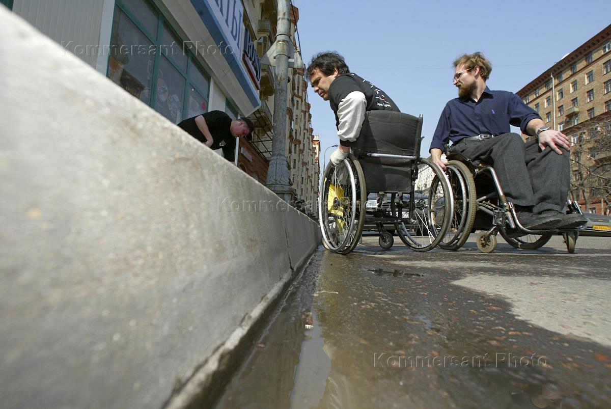 A disabled person distrubutes leaf-lets among car-drivers within the frameworks of the action headlined 'City without Barriers - City of the Future'.