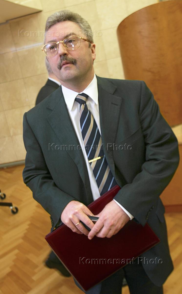 Заместитель председателя Федеральной комиссии по рынку ценных (ФКЦБ) России Геннадий Колесников (слева) и председатель ФКЦБ Игорь Костиков (справа) во время конференции на тему "Корпоративное поведение на финансовых рынках". Конференция прошла в здании Московской межбанковской валютной биржи (ММВБ).