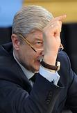 Руководитель Департамента градостроительной политики Москвы Сергей Левкин во время пресс-конференции в помещении градостроительного макета Москвы на территории ВДНХ.