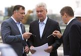 Заместитель мэра Москвы по вопросам градостроительной политики и строительства Марат Хуснуллин (слева) и мэр Москвы Сергей Собянин (в центре) во время осмотра строительства участка Северо-Восточной хорды, на участке от шоссе Энтузиастов до Измайловского шоссе.