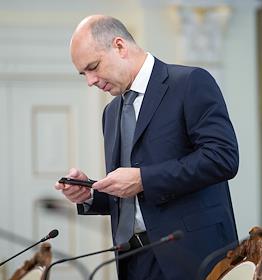 Министр финансов России Антон Силуанов перед началом совещания президента России Владимира Путиным с членами правительства России.