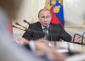 Президент России Владимир Путин во время совещания с членами правительства России.