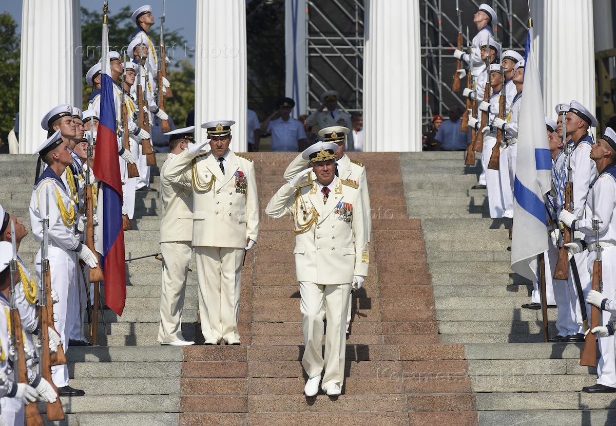 Командующий Черноморским флотом России адмирал Александр Витко (в центре) на праздновании Дня Военно-морского флота России в Севастополе.