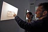 Директор Мультимедиа Арт Музея Ольга Свиблова (слева) и художник Иван Лунгин (справа) на церемонии открытия выставки Ивана Лунгина "Ничего личного" в Мультимедиа Арт Музее.