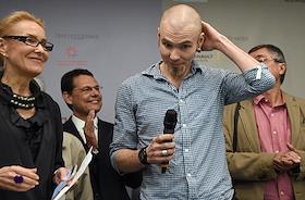 Художник Иван Лунгин на церемонии открытия своей выставки "Ничего личного" в Мультимедиа Арт Музее.