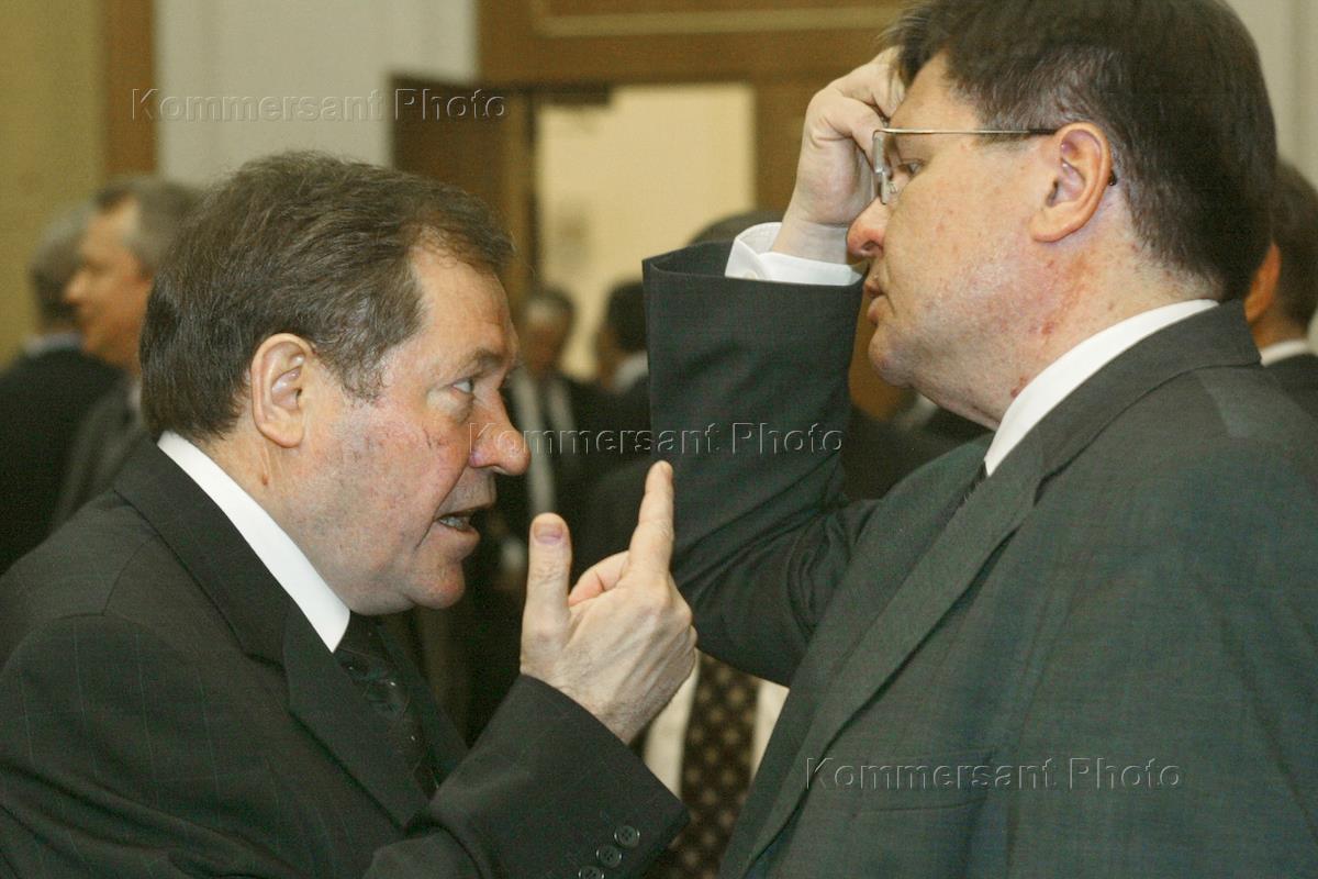 Russian Deputy Prime Minister, Finance Minister Alexey Kudrin (left) talks to Defence Minister Sergey Ivanov (right) at a government meeting.