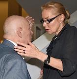 Искусствовед, художественный критик, куратор, директор Института проблем современного искусства Иосиф Бакштейн (слева) и директор Мультимедиа Арт Музея Ольга Свиблова (справа) на церемонии открытия выставки "ТАСМА. Казанская фотогруппа" в Мультимедиа Арт Музее.