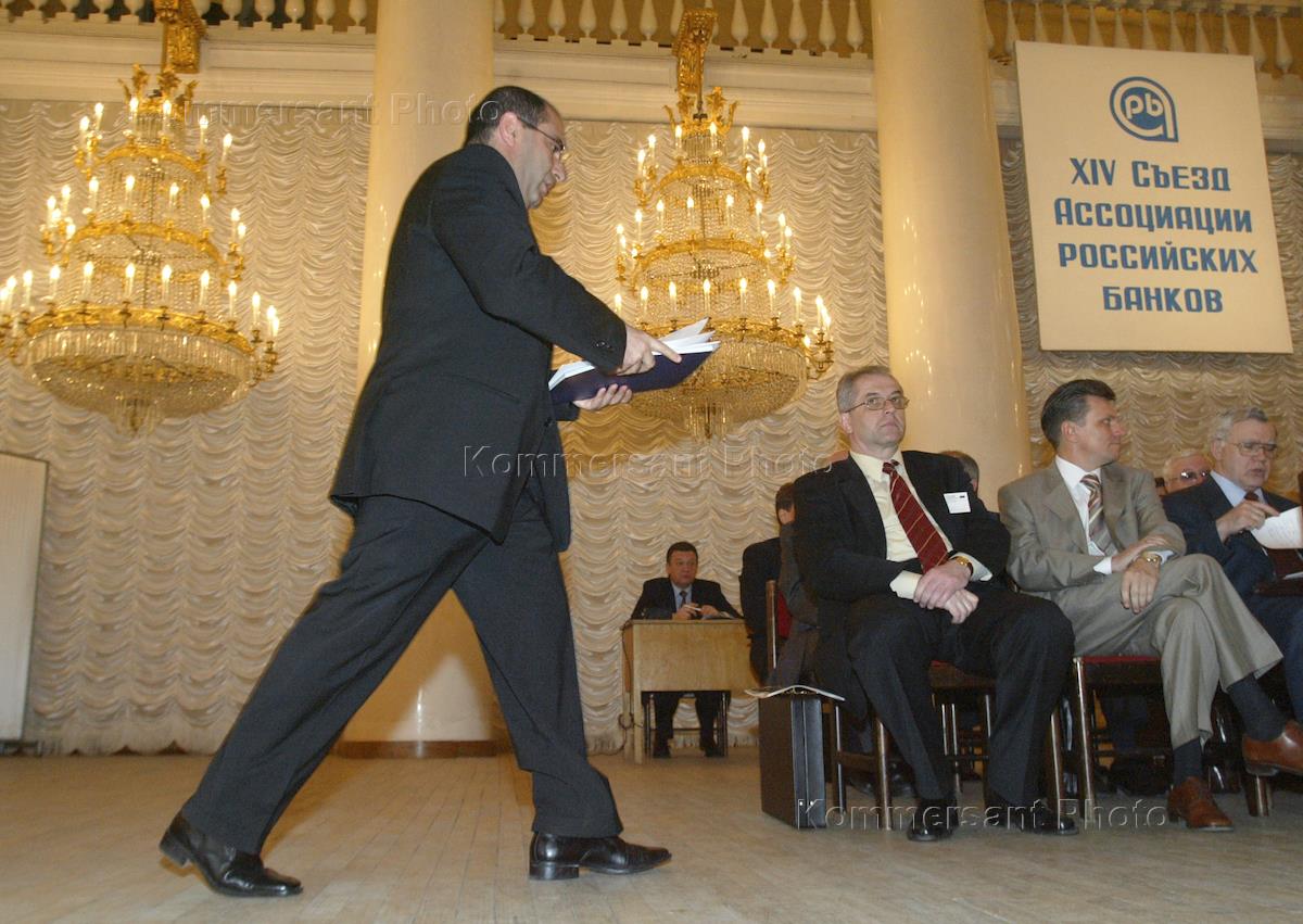 Председатель Федеральной комиссии по рынку ценных бумаг Игорь Костиков перед началом 14 съезда Ассоциации российских банков (АРБ). Съезд прошел в Колонном зале Дома союзов.