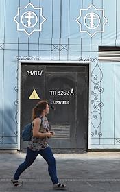 Жанровая фотография. Девушка идет по улице рядом с трансформаторной станцией.