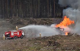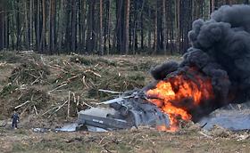 Военный вертолет Ми-28, потерпевший крушение во время международного этапа конкурса "Авиадартс-2015" на полигоне "Дубровичи" в Рязанской области.