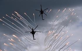 Вертолеты Ми-28 во время международного этапа конкурса "Авиадартс-2015" на полигоне "Дубровичи" в Рязанской области.