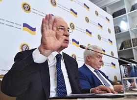 Бывший премьер-министр Украины Николай Азаров во время пресс-конференции Комитета спасения Украины. Пресс-конференция прошла в зале "Библиотека" гостиницы "Украина".