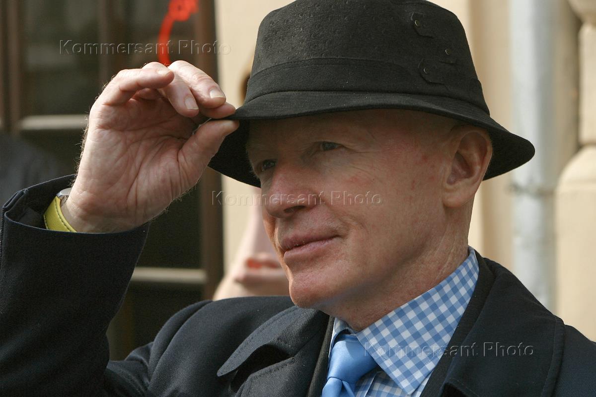 President of Templeton Fund Mark Mobius leaves the Interfax news agency headquarters after the news conference headlined 'Templeton Fund LDC Bought into Perekrestok Retail Network'.