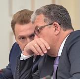Первый заместитель председателя Правительства России Игорь Шувалов (слева) и заместитель председателя правительства России - руководитель аппарата правительства России Сергей Приходько (справа) перед началом совещания президента России Владимира Путина с членами правительства России в резиденции Ново-Огарево.