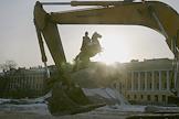Ковш экскаватора на месте строительных работы у памятника Петру I (Медный всадник).