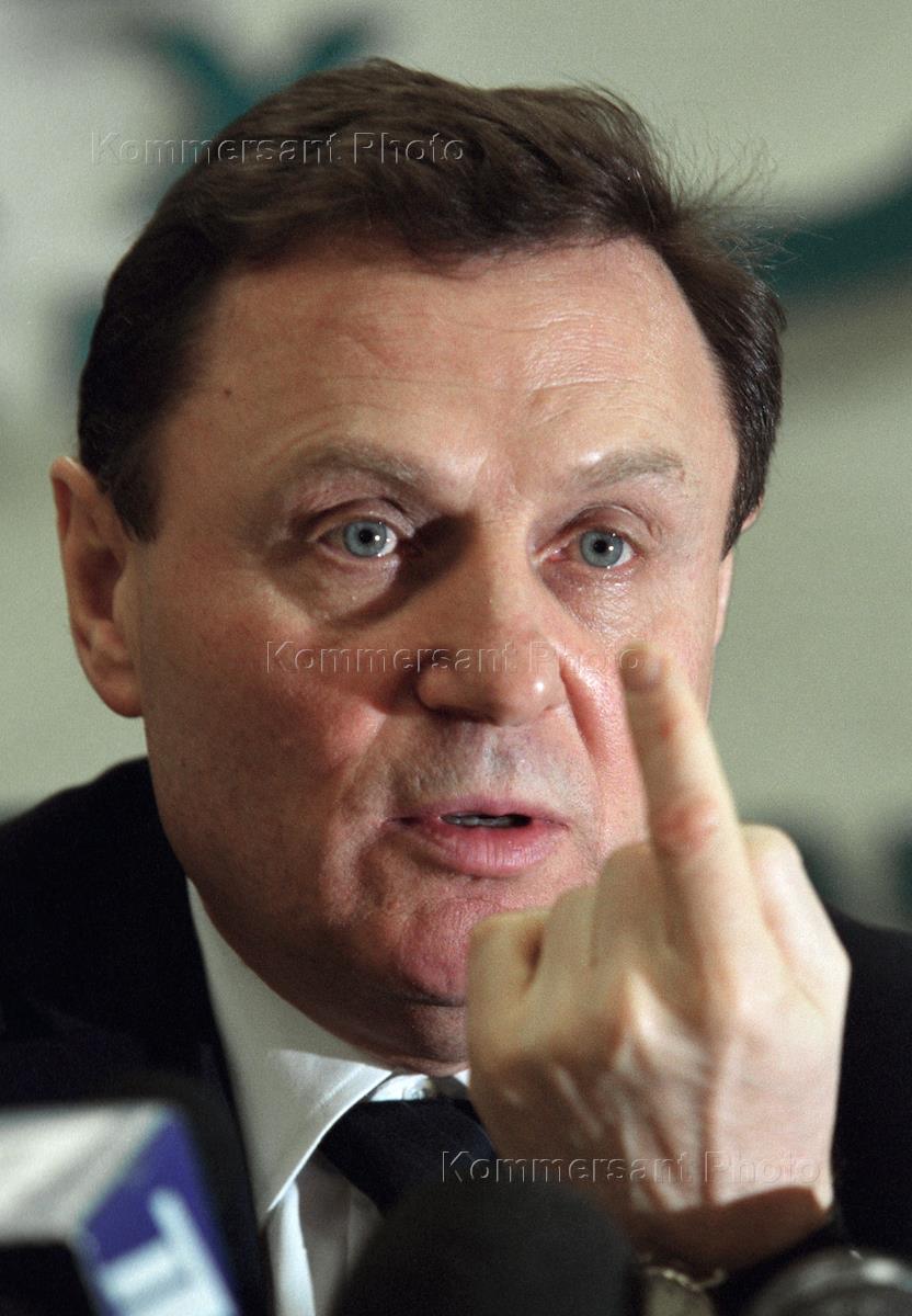 Председатель Социалистической партии России Иван Рыбкин во время брифинга на тему "Всероссийская акция демократических сил "Это — мой кандидат". Брифинг состоялся в агентстве "Интерфакс".