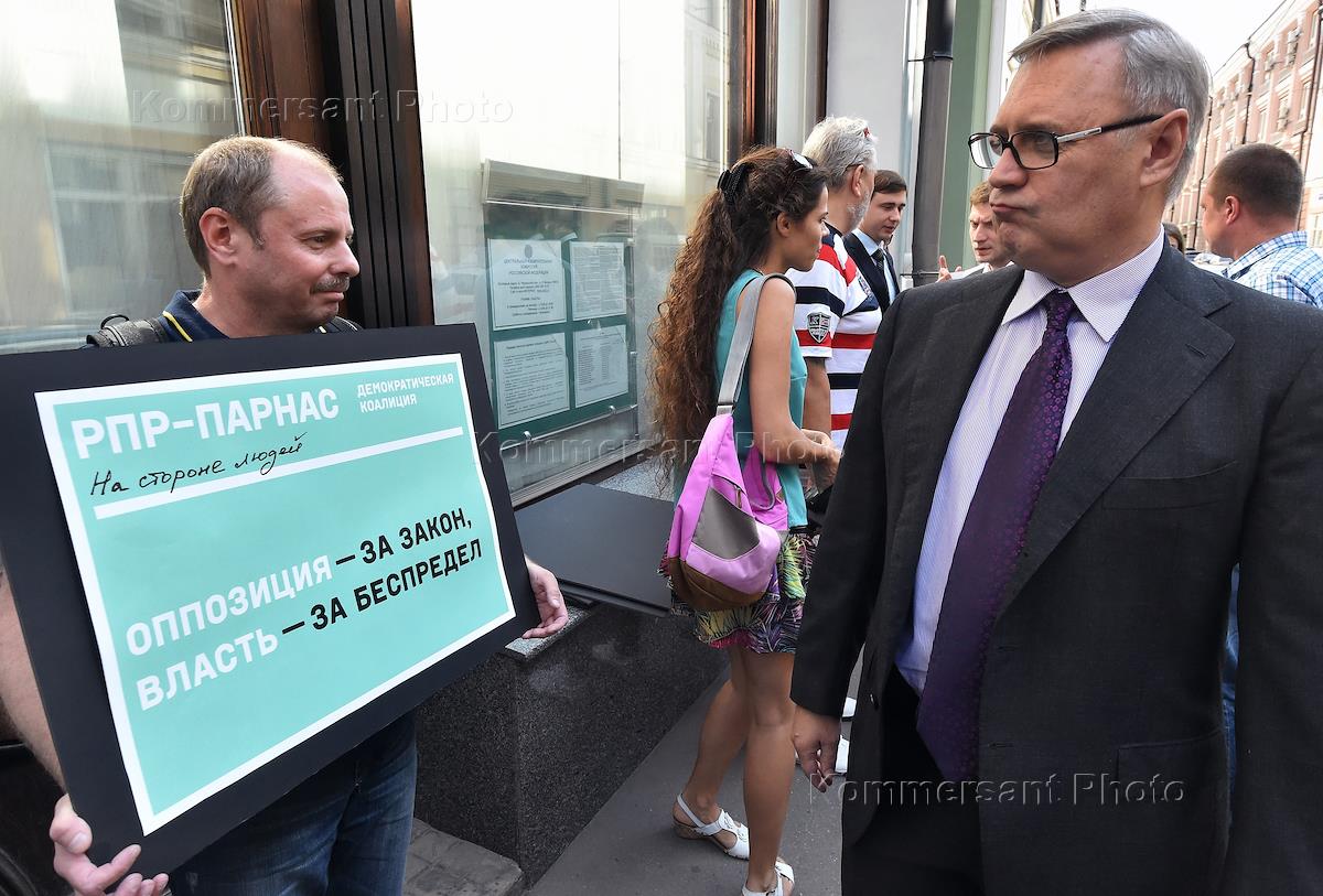 Председатель партии "Республиканская партия России — Партия народной свободы" (РПР-ПАРНАС) Михаил Касьянов перед началом заседания Центральной избирательной комиссии (ЦИК) России.