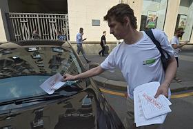 В день повышения тарифов на парковку в Москве, партия "Яблокок" провел акцию у здания мэрии против этого решения Департамента транспорта и с попыткой выяснить, почему парковка у здания столичной администрации является платной только на бумаге.