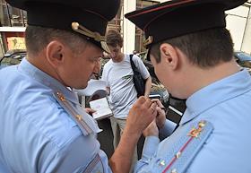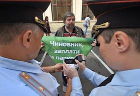 В день повышения тарифов на парковку в Москве, партия "Яблокок" провел акцию у здания мэрии против этого решения Департамента транспорта и с попыткой выяснить, почему парковка у здания столичной администрации является платной только на бумаге. Сотрудник полиции во время акции.