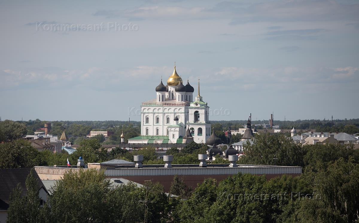 Виды города Пскова. Троицкий собор на территории псковского кремля.