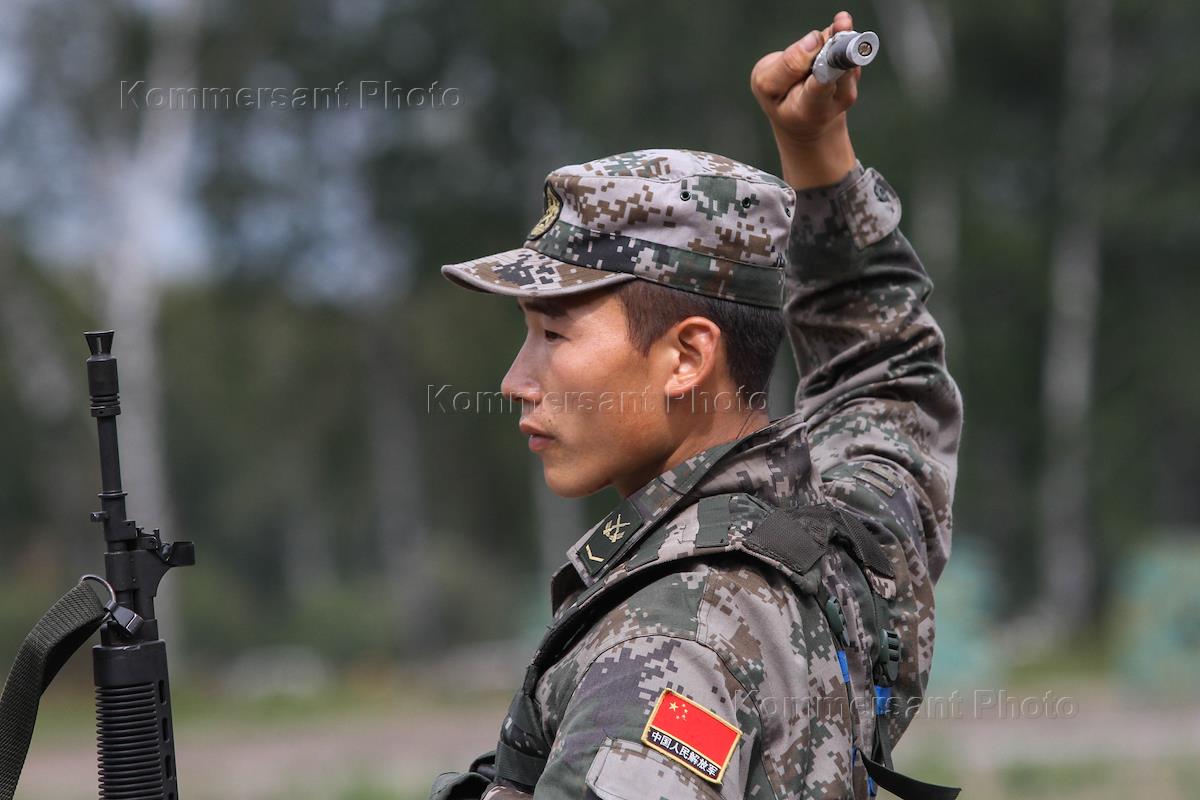 Военнослужащие Народно-освободительной армии Китая во время конкурса "Отличники войсковой разведки" в рамках "Армейских Международных игр – 2015" на базе учебного комплекса Новосибирского высшего военного командного училища.