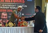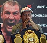 Российский боксер, чемпион мира по версии WBA, IBF и WBO Сергей Ковалев во время пресс-конференции в гостинице "Националь".