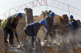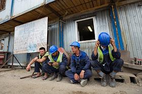 Рабочие во время строительства транспортной эстакады на пересечении Рязанского проспекта с МКАД.