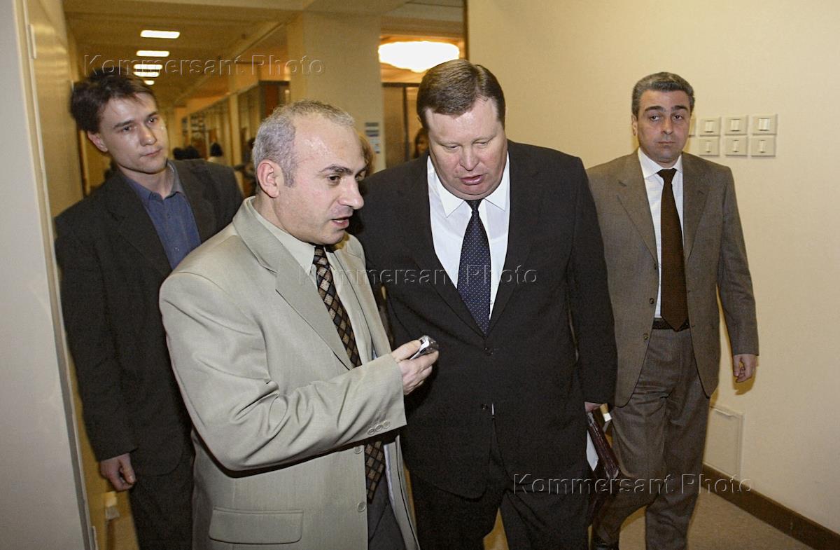 Member of the State Duma 'Union of the Right Forces' (SPS) Boris Nadezhdin is interviewed in the legislature lobby.