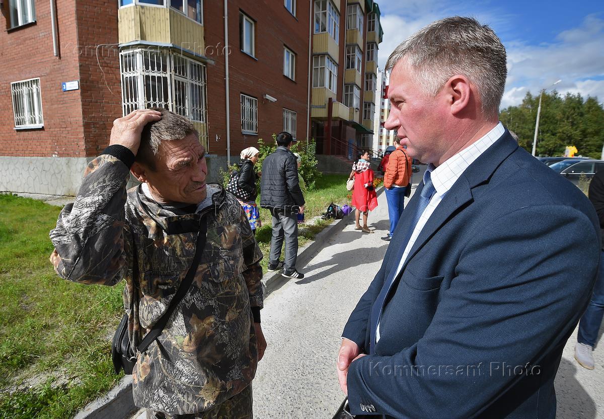 Жанровая фотография. Шаман Сергей Кечимов (слева) у здания Судебного участка Мирового судьи.