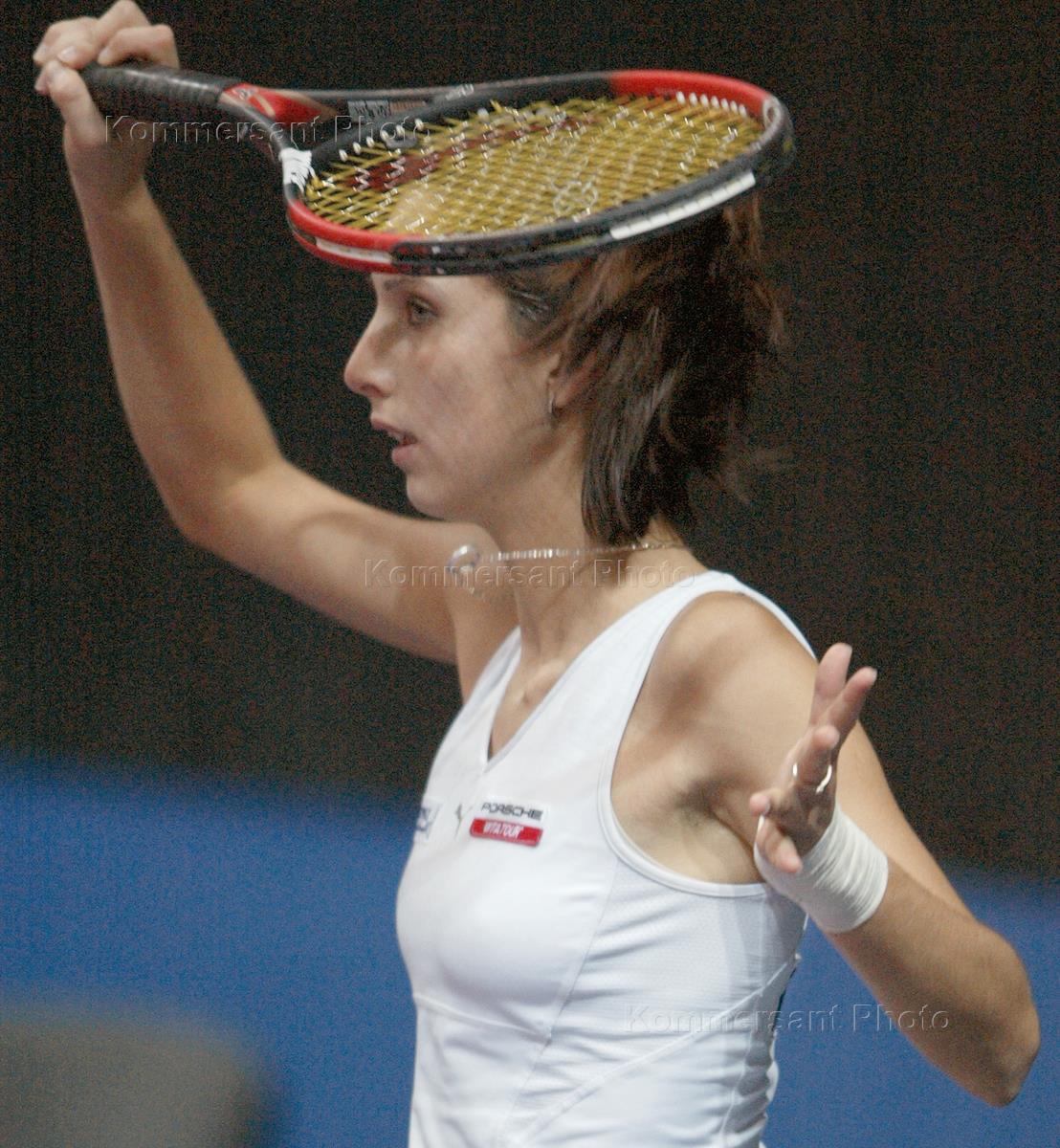 Member of the Russian female tennis team Anastasia Myskina takes part in the Federation Cup tournament.