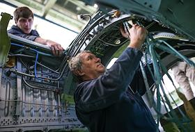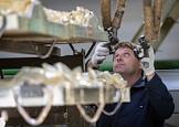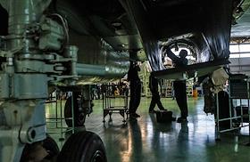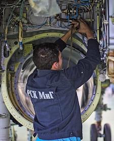 Цех производственного комплекса N1 АО "РСК МиГ" (Российская самолетостроительная корпорация МиГ"). Установка шасси на самолет.