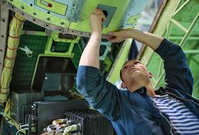 Цех производственного комплекса N1 АО "РСК МиГ" (Российская самолетостроительная корпорация МиГ"). Сборка и установка аппаратуры в кабине самолета.