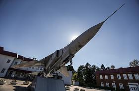 Производственного комплекса N1 АО "РСК МиГ" (Российская самолетостроительная корпорация МиГ"). Модель самолета МиГ на площади перед зданием комплекса.