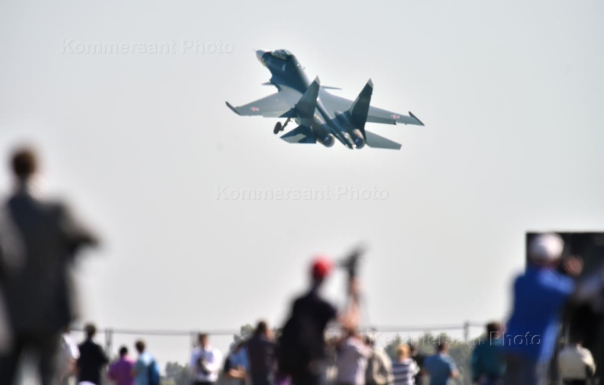 Международный авиационно-космический салона МАКС-2015 прошел в подмосковном Жуковском. День первый. Истребитель Су-30.