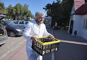 Фермер сыровар компании "Русский пармезан" Олег Сирота во время доставки йогуртов со своей сыроварни в магазин в деревне Кострово.